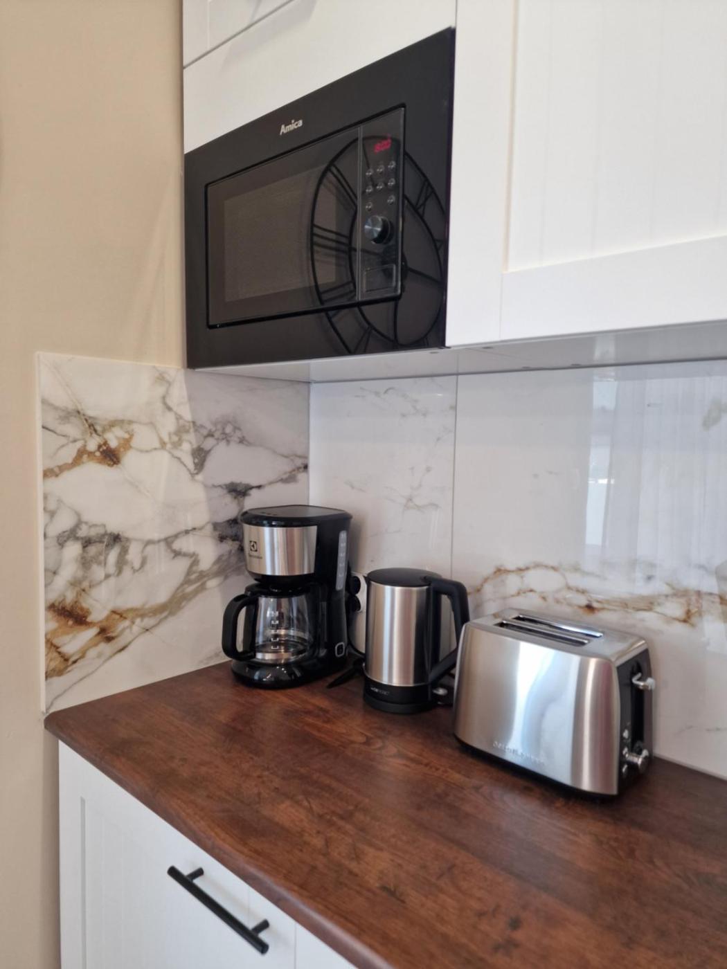 Oferta apartamentu obejmuje sypialnię (1), salon, kuchnię z pełnym wyposażeniem, w tym lodówką i ekspresem do kawy, a także łazienkę (1) z prysznicem oraz suszarką do włosów. W apartamencie zapewniono ręczniki i pościel.